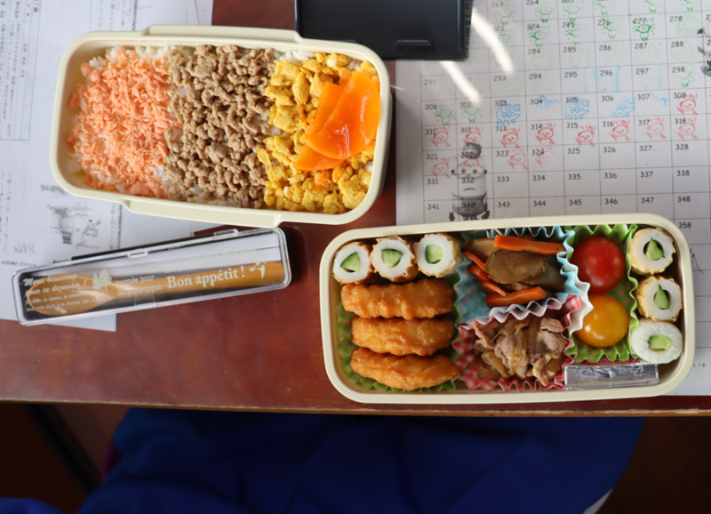 2年生の先生は、お弁当のアップの写真を中心に撮ってくれました。どのお弁当も工夫が施されていておいしそうですね!食べるのがもったいないくらいです