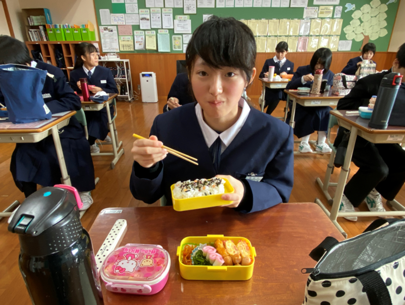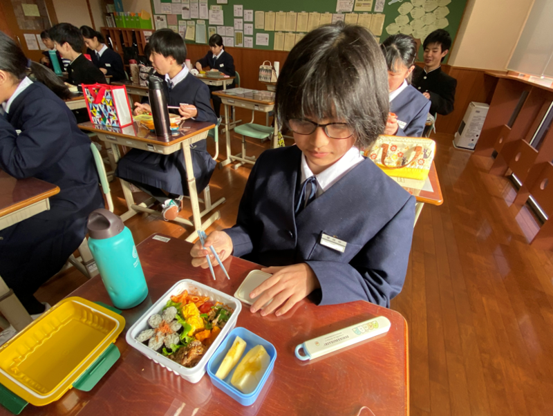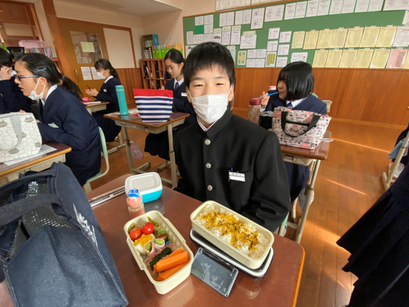 さて、今日はBBCの日です。生徒たちは自分で作ったお弁当を持って元気に登校してきました 登校する生徒たちに弁当づくりについて聞いてみると「朝5時に起きて作りました」「少しおうちの人に手伝ってもらいました」「計画通りにできました」「味見したらおいしかったです」などなど… 昼食の時間が楽しみですね