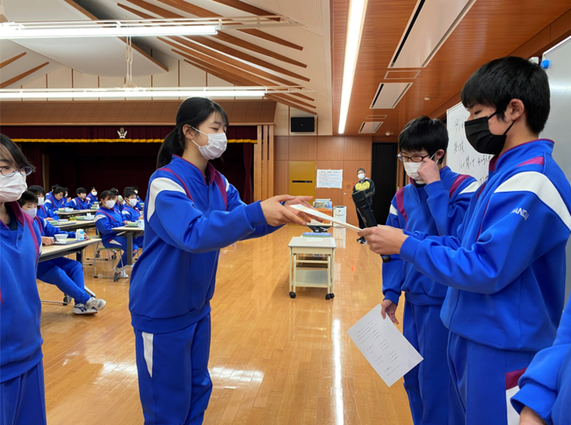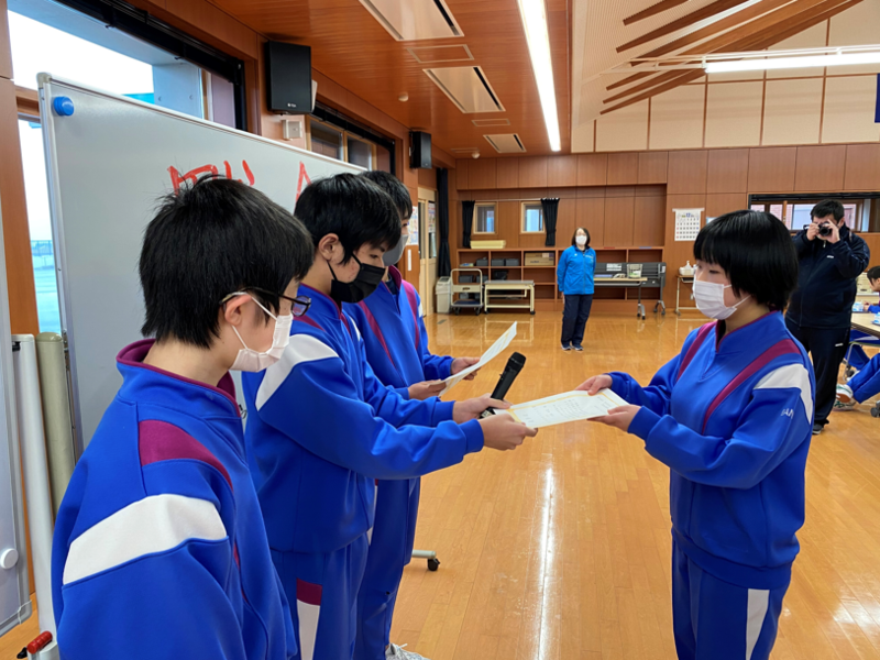 2学期期末テストのときに実施した自主学習コンクールの表彰を、本日の給食時に行いました。