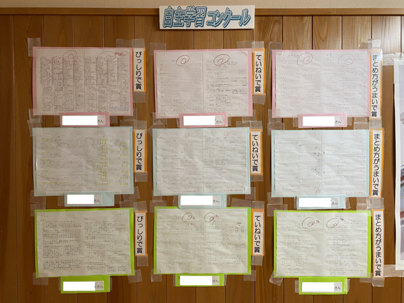 入賞したみなさんの自主学習ノートのコピーは校務センター前の廊下に掲示されていますので、これからの自主学習の参考にしてはいかがでしょう。