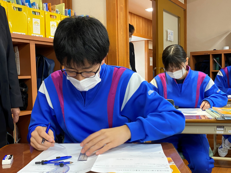 2年生の数学では、三角形の合同条件について、実際に作図しながら考えました。