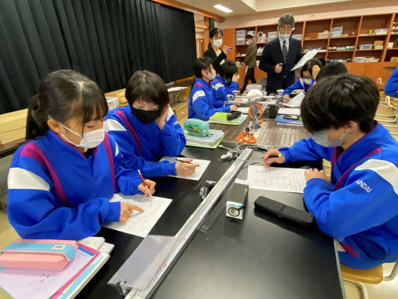 1年生の理科では、凸レンズによる実像のでき方について、実験を通して考察しました。