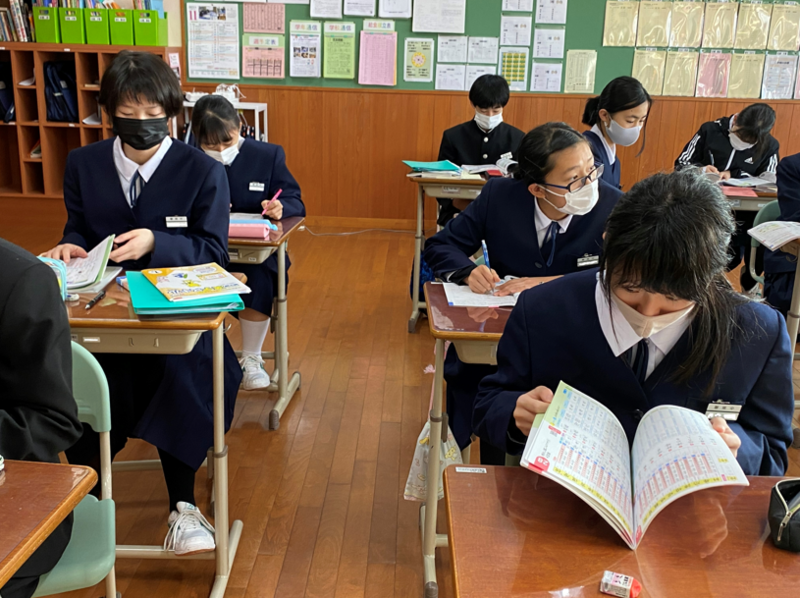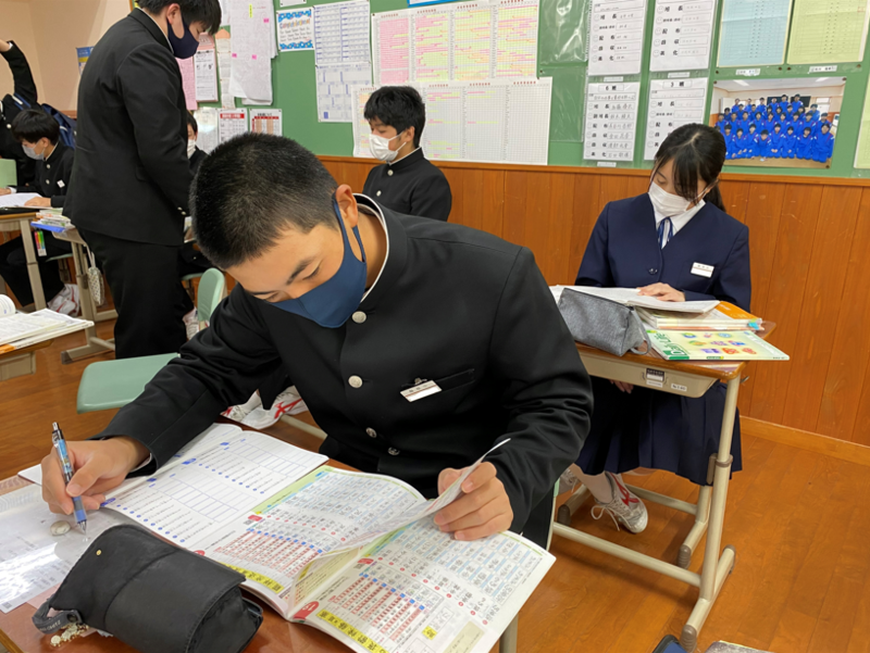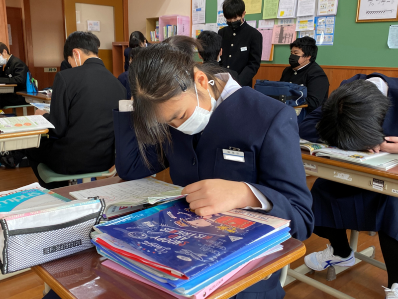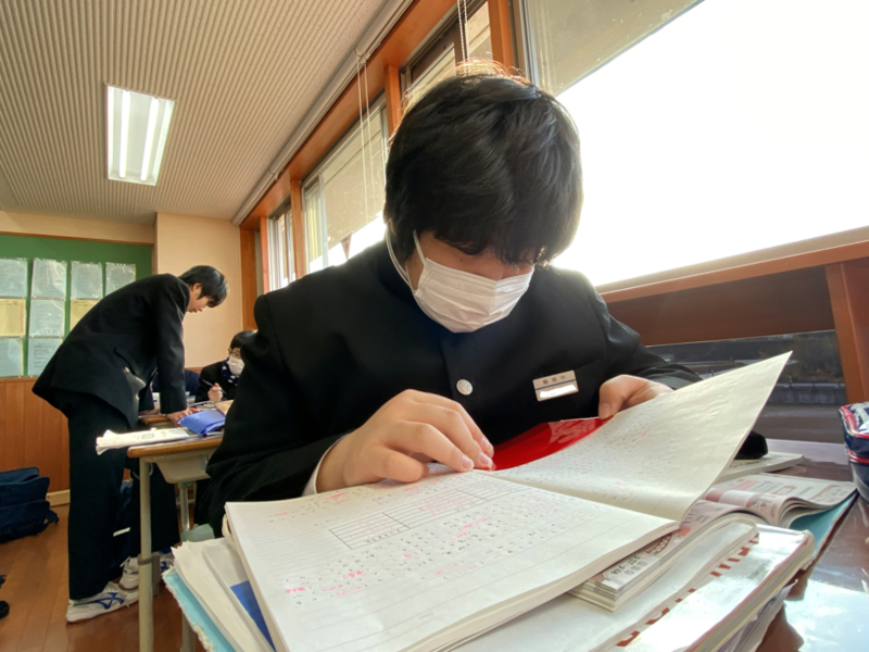 2021年11月26日 08時40分おはようございます。期末テスト2日目です。今朝もテスト直前まで眠い目をこすりながら勉強に取り組む生徒たちです