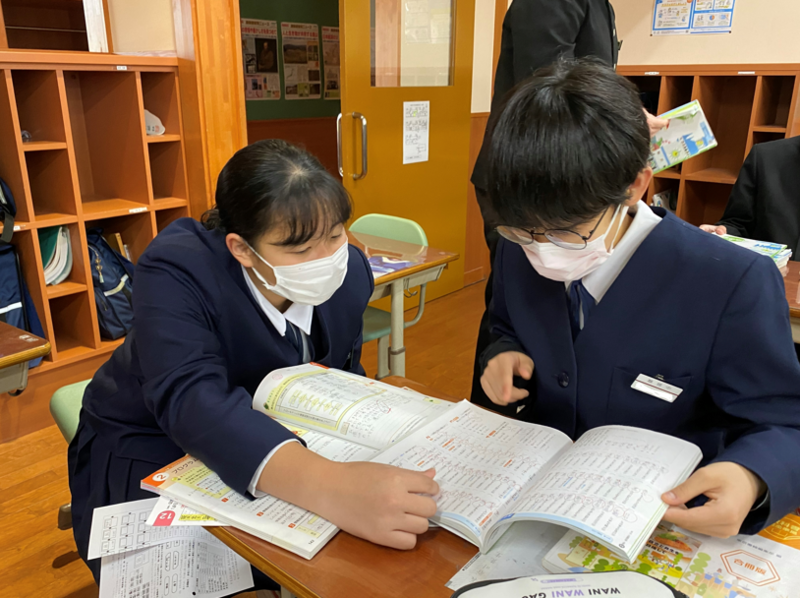 特別支援学級(2組)の教室をのぞいてみると、数学の先生とマンツーマンでプリントに取り組んでいました。今日は小数の筆算を学習しました 最後まで粘り強くていねいに計算していました
