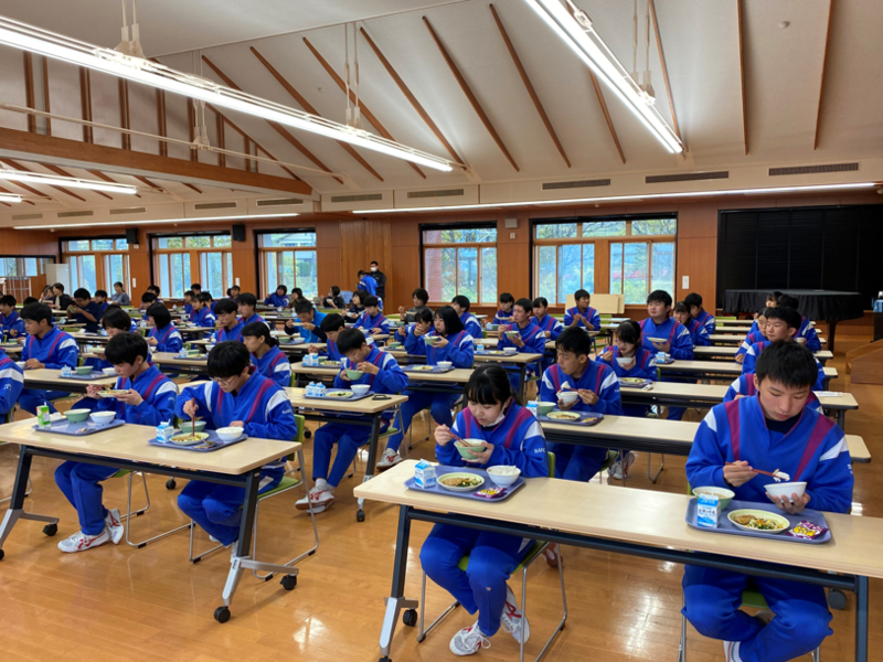 今日から3年生も登校して、1週間ぶりに全校生がそろっての給食でした