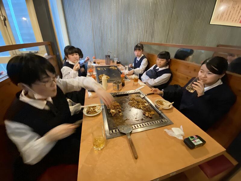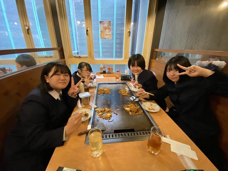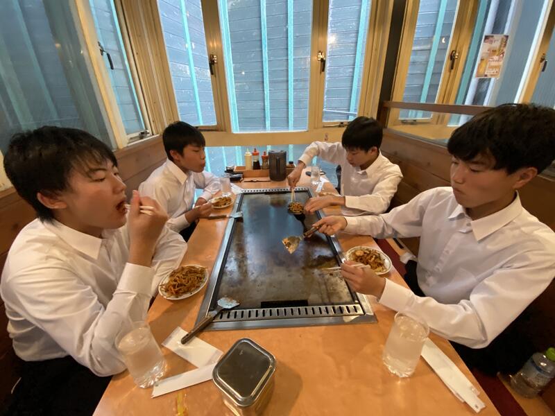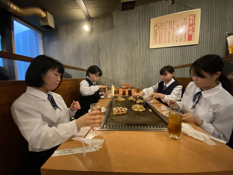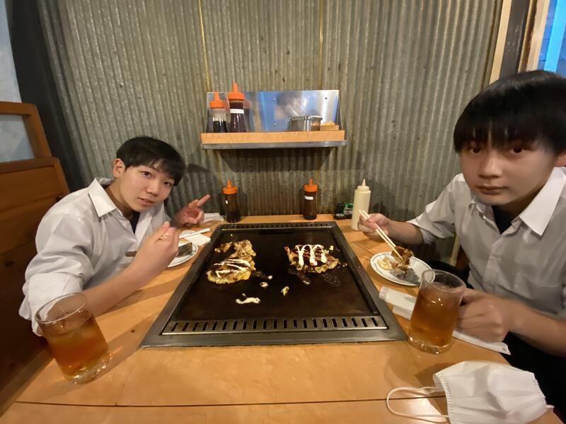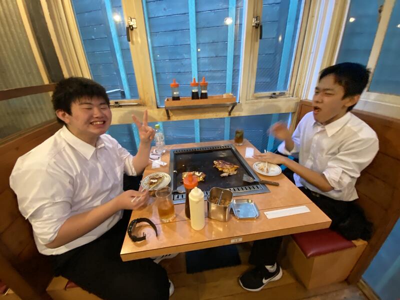 今日の昼食は「粉もん」の大阪名物「お好み焼き」と焼きそばです。熱々のお好み焼きと焼きそばをおいしくいただきました どのテーブルの鉄板もきれいになくなりましたごちそうさまでした