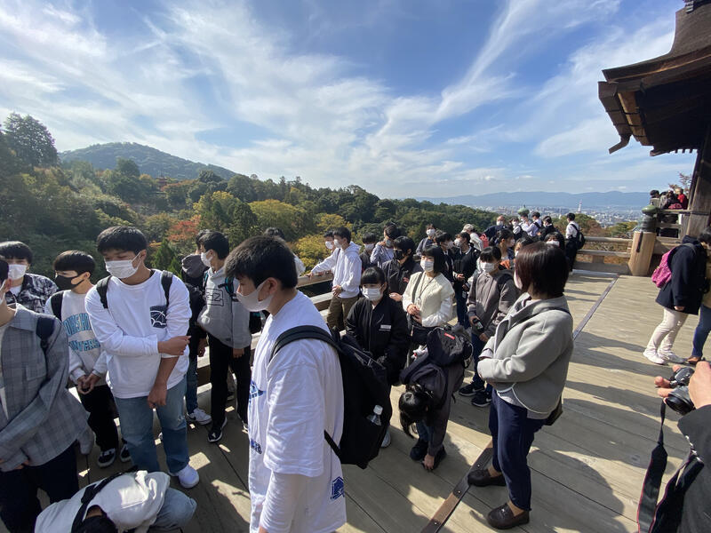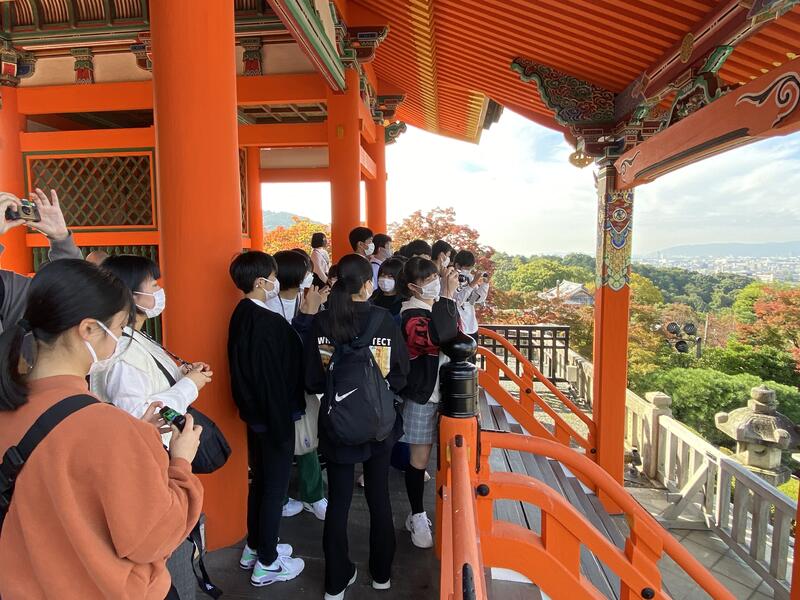先ほど清水寺を出発して、現在、USJに向かっています。みんな元気です