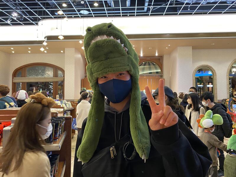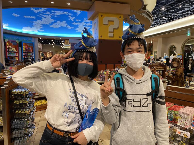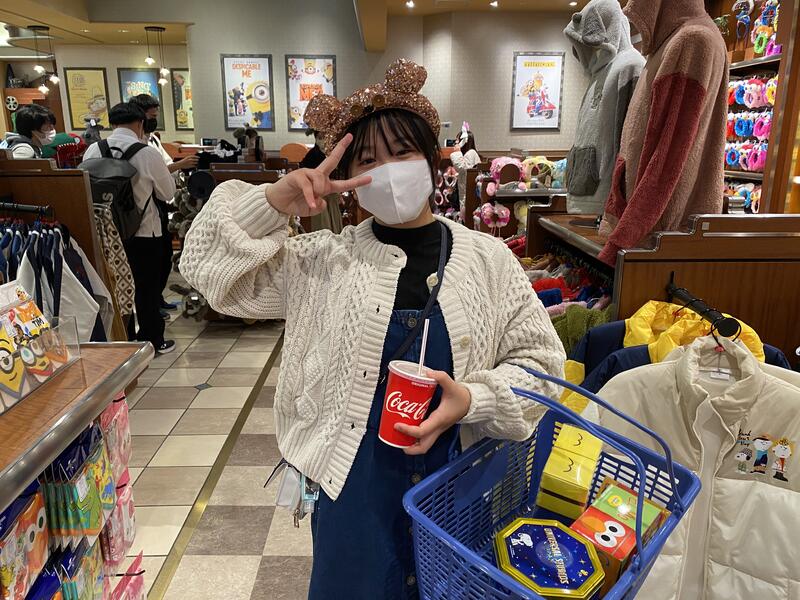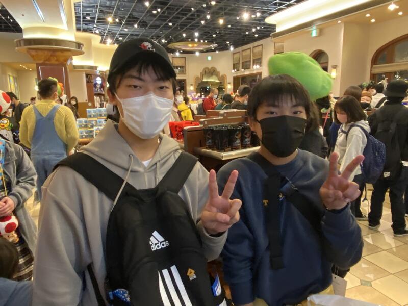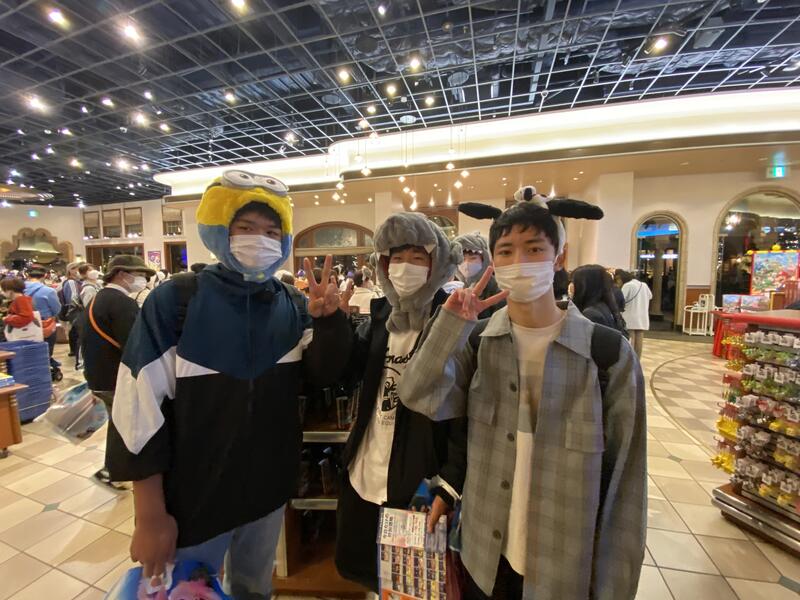 集合時間まで、あと1時間20分となりました。定点観測作戦ですが、園内は暗くなったし時間も残り少なくなってきたので、ハリーポッター前から明るいお土産ショップの中に場所を変更することにしました。すると、早速生徒を発見しました この後も生徒たちが現れることを期待して、張込みを続けてみます
