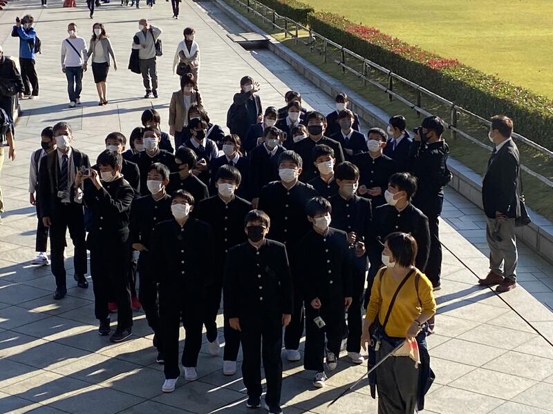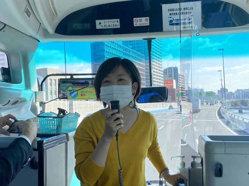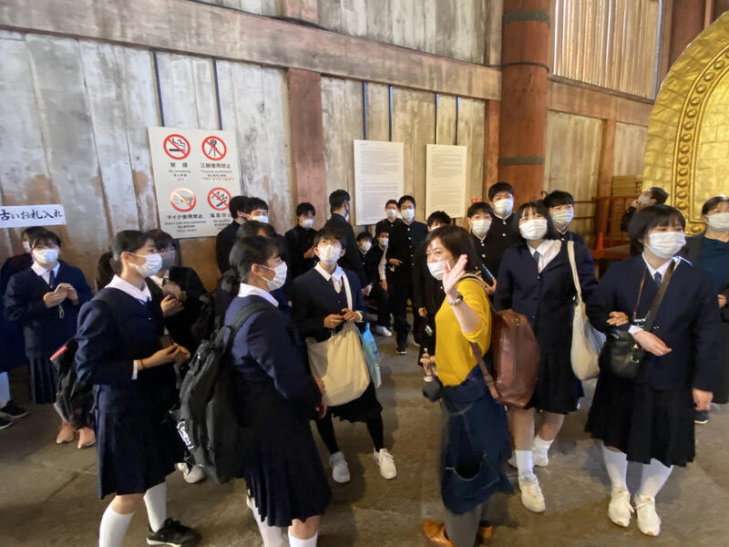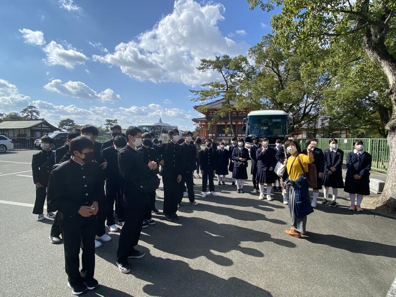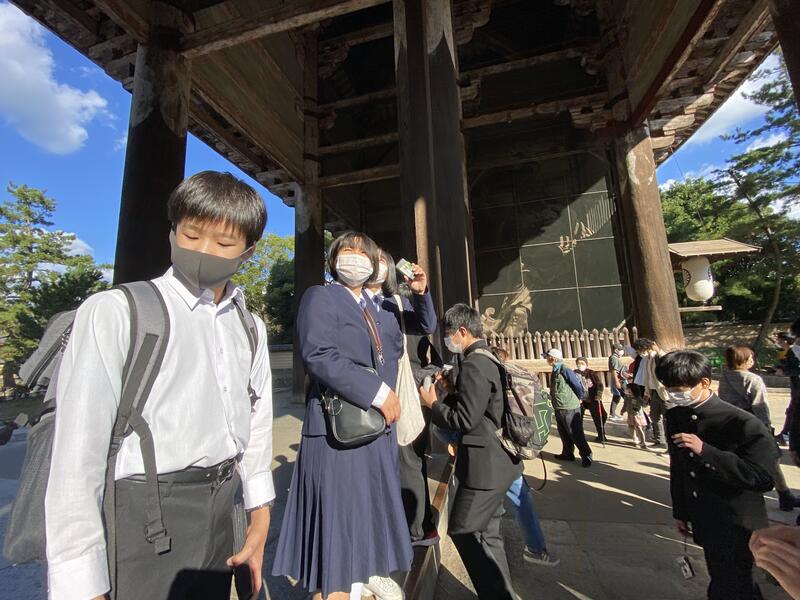 先ほど東大寺を出発して、大阪エキスポシティのVSパークに向かっています。バスの中は静かです。さすがに疲れが出てきているようです。