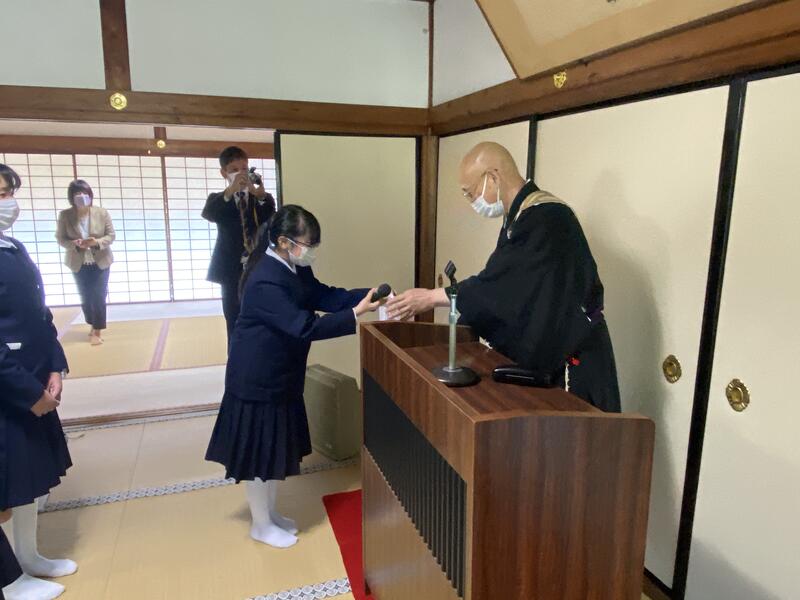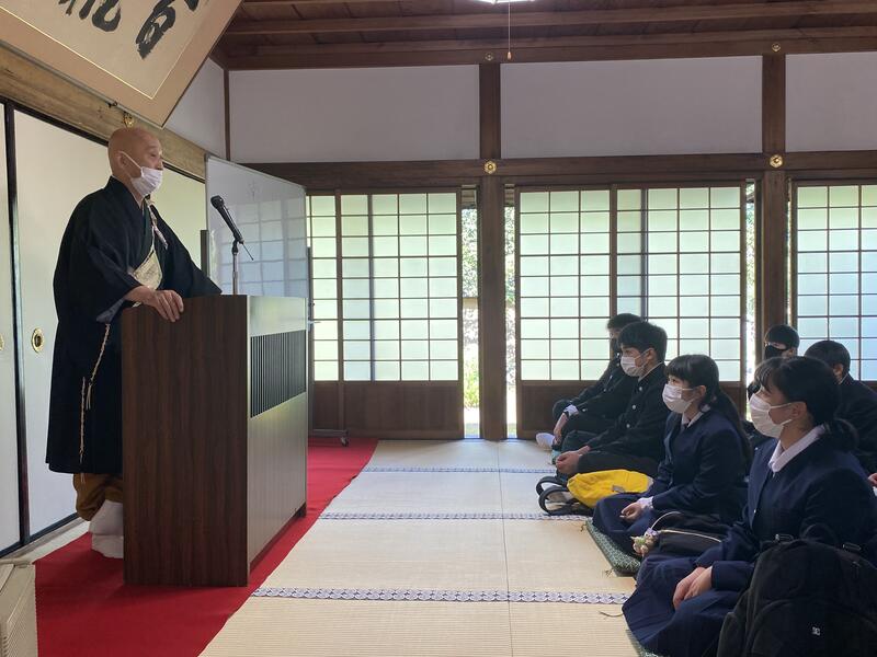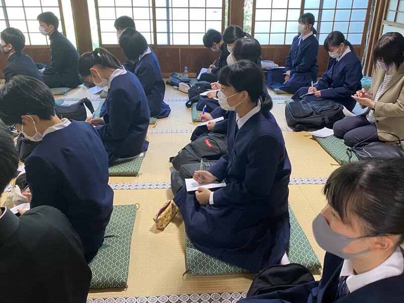 ふだんはなかなか入ることのできない興福寺本坊にて、森谷貫首様より講話をしていただきました。メモを取りながらしっかりと話を聴いていました。
