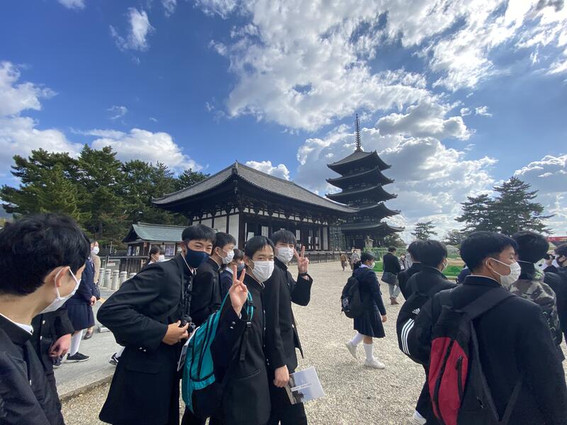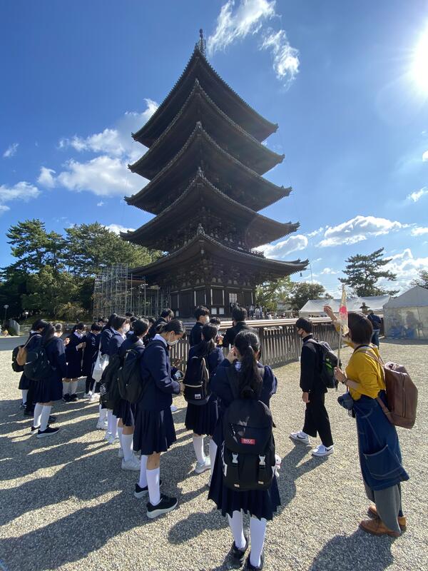 講話の後は興福寺の五重の塔や東金堂、国宝館を見学しています。