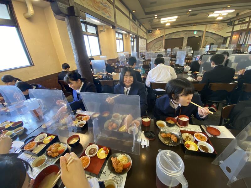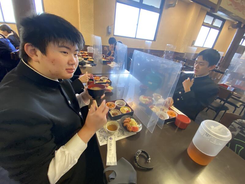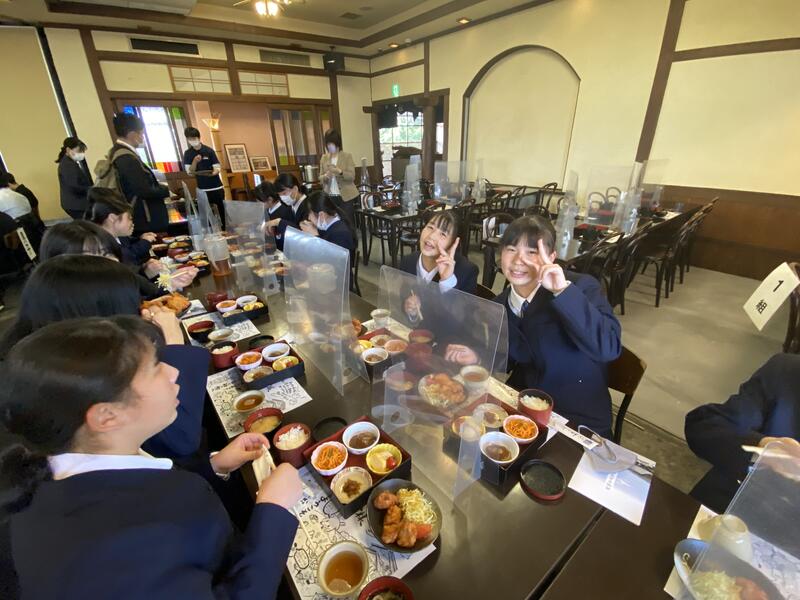 なら和み館での昼食です みんな食欲モリモリです。エネルギーを補充して、これから東大寺に向かいます。みんな元気です