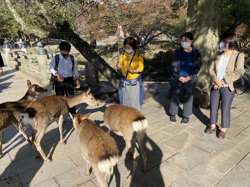 今日一日、奈良のガイドをしてくださる安達えみさんです。安達さんは仕事で福島県にいたこともあり、会津に何度も来たことがあるそうです。その後、奈良が好きすぎて奈良に移住されたということで、普通のガイドさんとは違う視点から奈良の情報をたくさん教えていただけそうです。