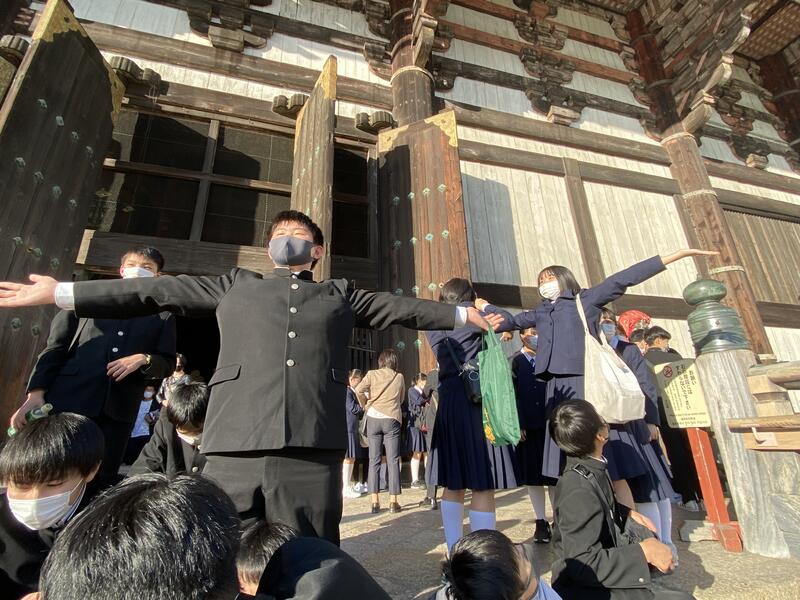 東大寺の見学の様子です。南大門で運慶快慶の金剛力士像を見ました。