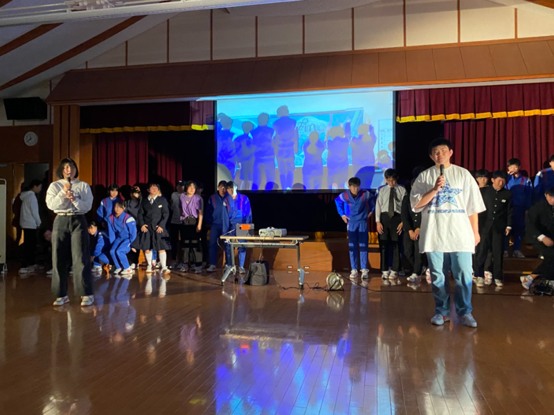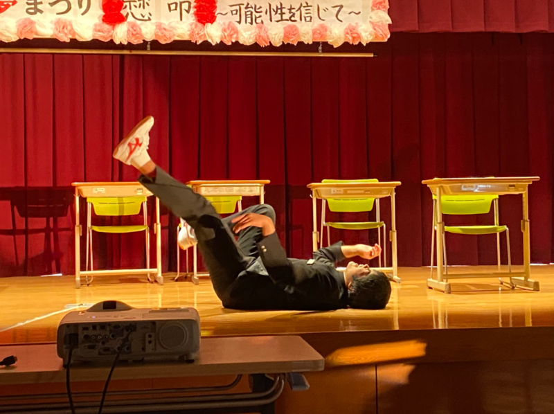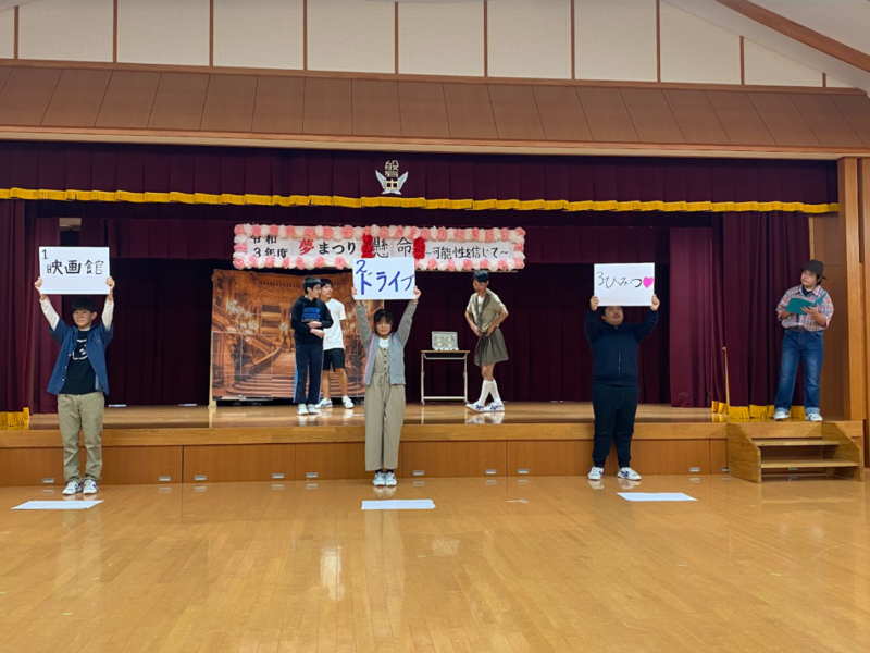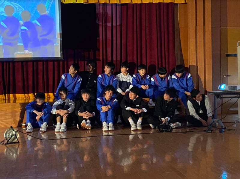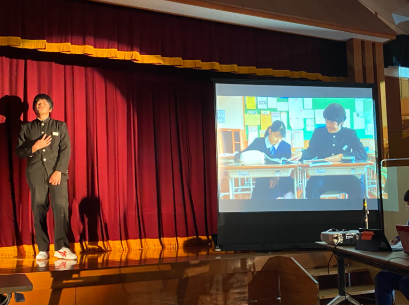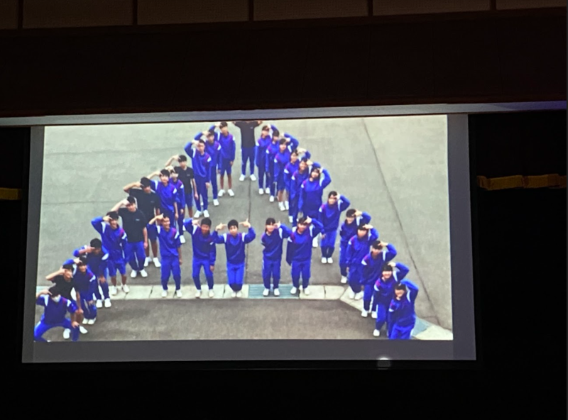 3年生の学年発表後半の名シーンです。後半も,ダンスあり,かっこいい動画あり,黒板アートあり,全員でのダンスや合唱ありと見どころ続きで,あっという間の時間でした。残念ながらRくんのYさんへの恋は成就しなかったけれど,3年生全員で力を合わせて創りあげた笑いと涙の青春物語がHAPPY ENDで完結しました