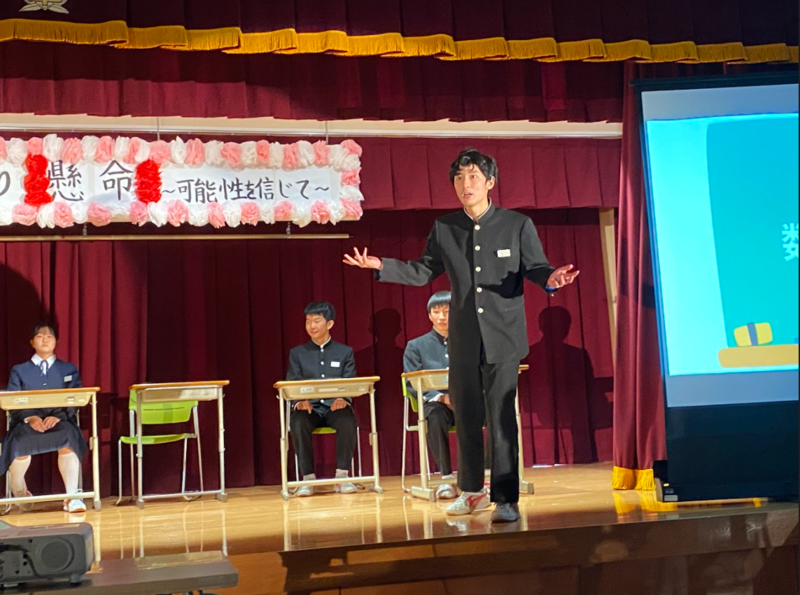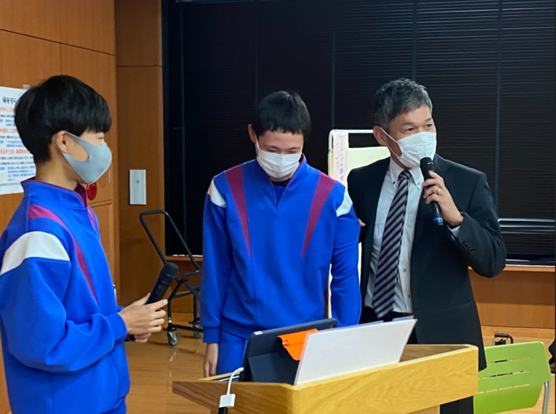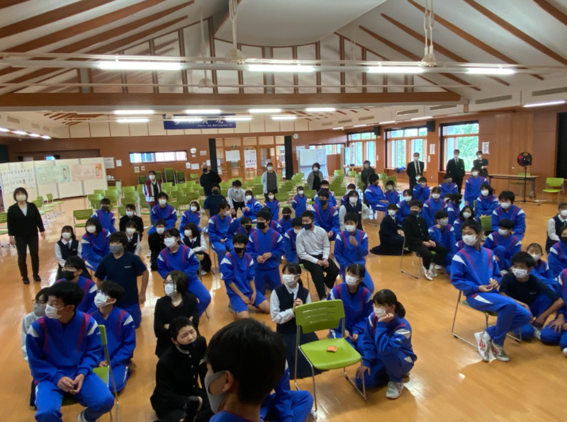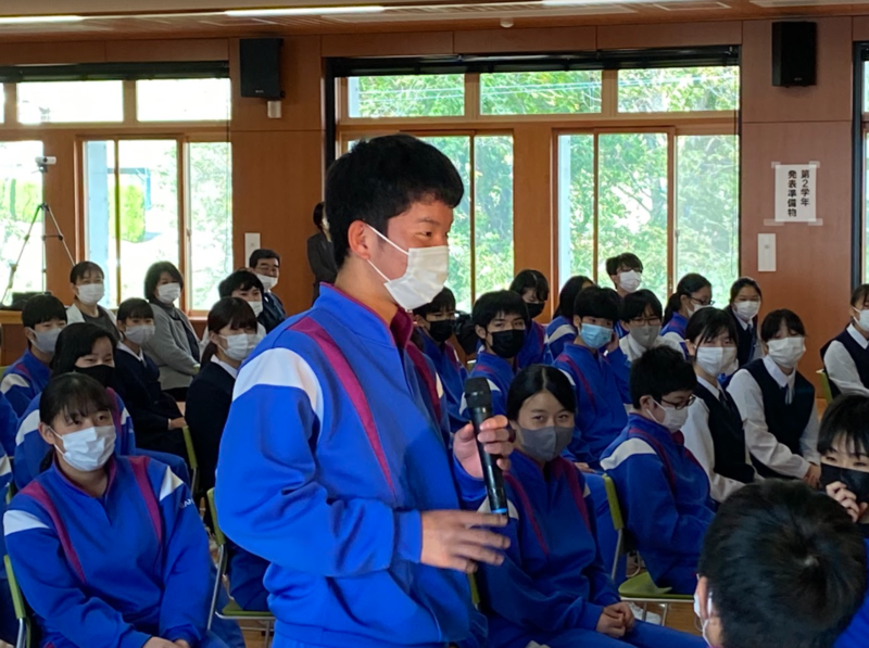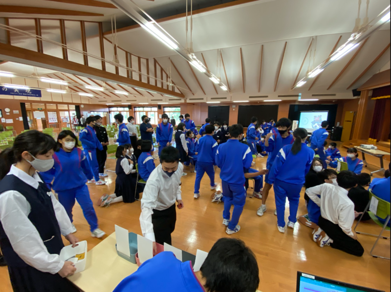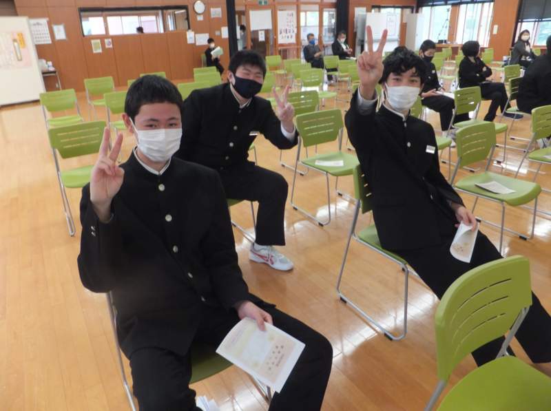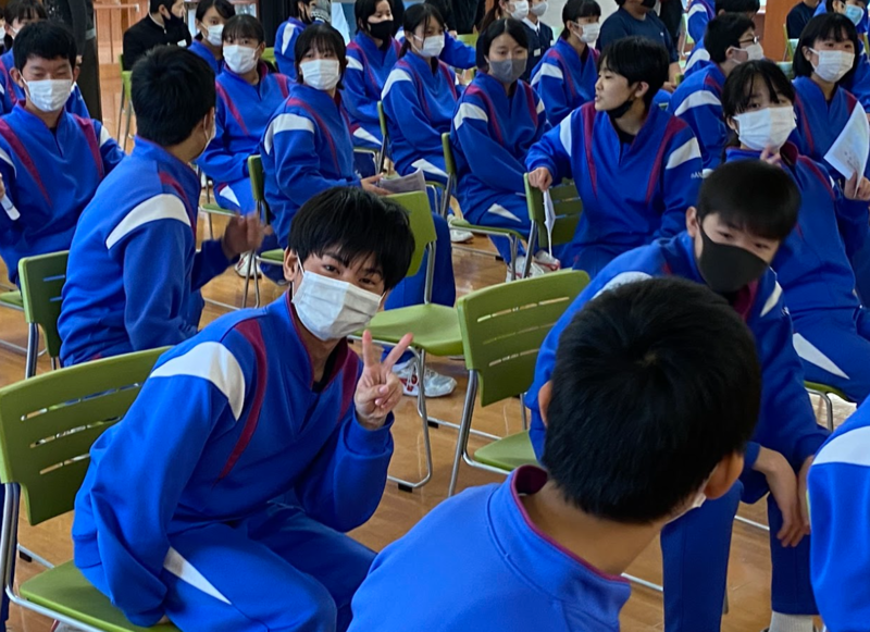 今年の生徒会企画は全校クイズ大会、題して「あなたはTくんより賢いの?」です。各班対抗で20問の4択クイズに挑戦!あなたはTくんの正解数を上回ることができるのか 磐梯中や先生方に関する問題あり、授業で学習した内容の問題あり、はたまた司会をしているMくんの体重を問う問題など答に迷うこともあり「え~っ,どれだぁ?」「ねぇ,答どれ?」「Bじゃね!?」「いや,Cでしょ!」などなど、各班ともメンバーの知識と記憶と運を結集させて答えていました Tくんの正解数を上回った3つの班で決勝を行いましたが、3つの班とも正解数が同じだったため優勝を分け合い、豪華賞品をGetしました