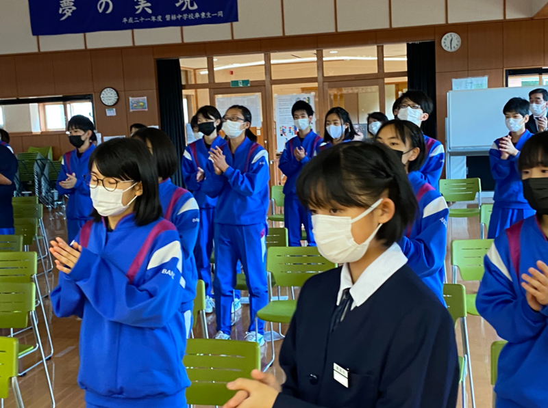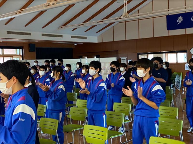 閉会セレモニーの様子です。前日までの練習や準備、そして当日の本番で、生徒たちのキラキラと輝く笑顔と「懸命」な姿がたくさん見られたすばらしい「夢まつり」でした そして、たくさんのケミストリーを起こし、多くのことを学んで一回り成長した磐梯中学校の生徒たち。皆さんを誇りに思います。今年の夢まつりを通して得た自信,友情,経験…を生かして、これからも夢と誇りをもって前進していってくれることを期待しています(^^)/