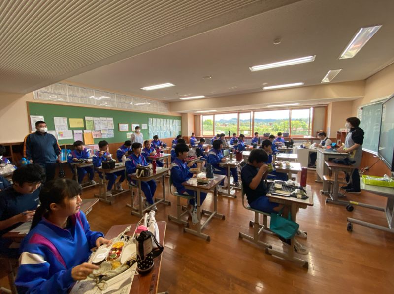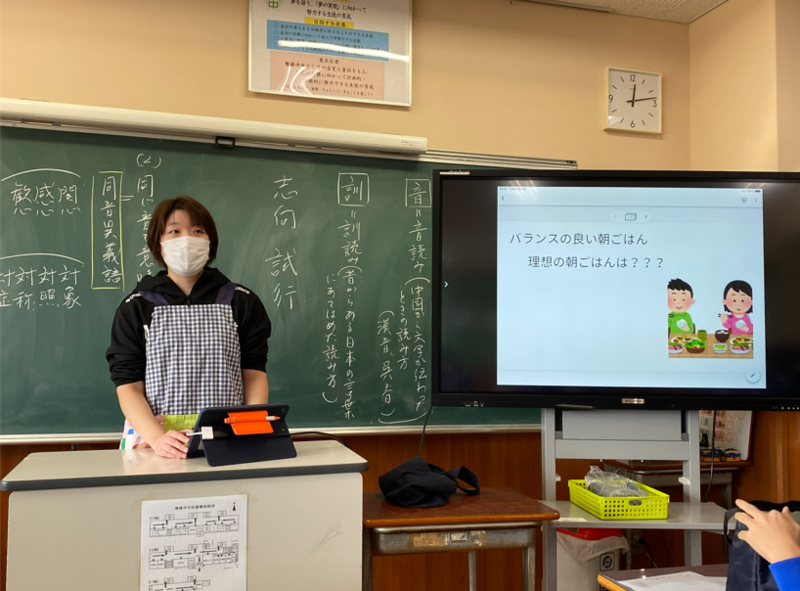 本日、磐梯一小栄養教諭の栁田先生に来ていただき、バランスのよい朝食にするためにどうすればよいかについて講話をしていただきました。