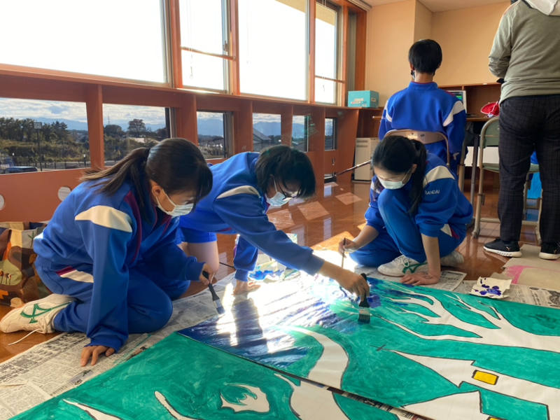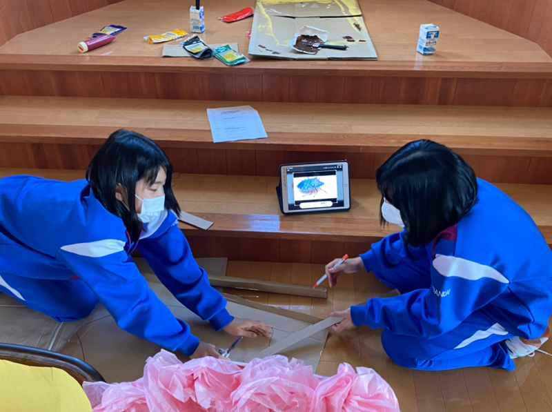 1年生も頑張っていますよ 知恵を出し合って工夫しながら小道具を製作中!