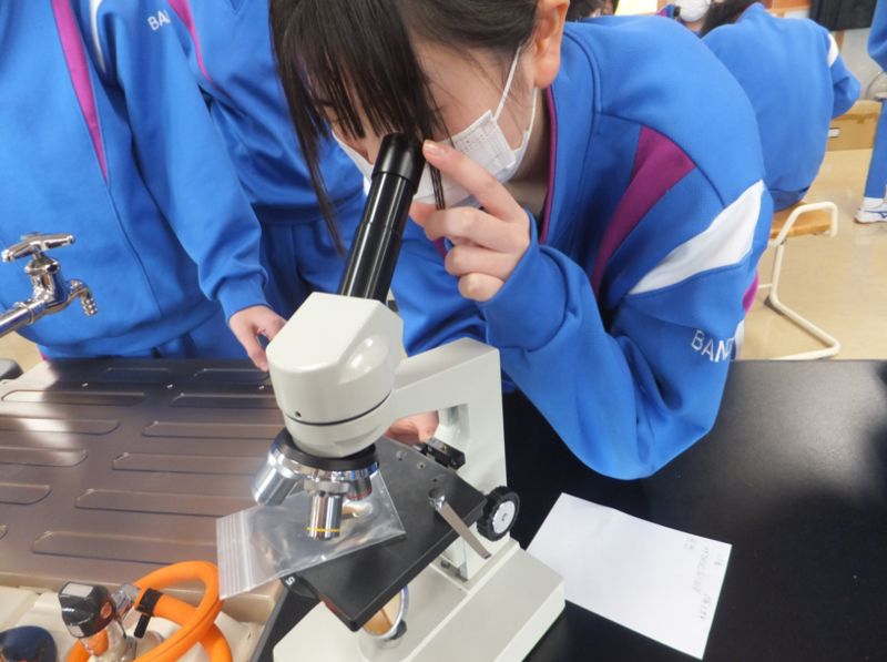 2年生は、昨日の理科の授業でメダカの血流観察をしました 校内は夢まつりモード一色ですが、さすがは磐中生、授業との切り替えがきちんとできています みんな集中して観察していました