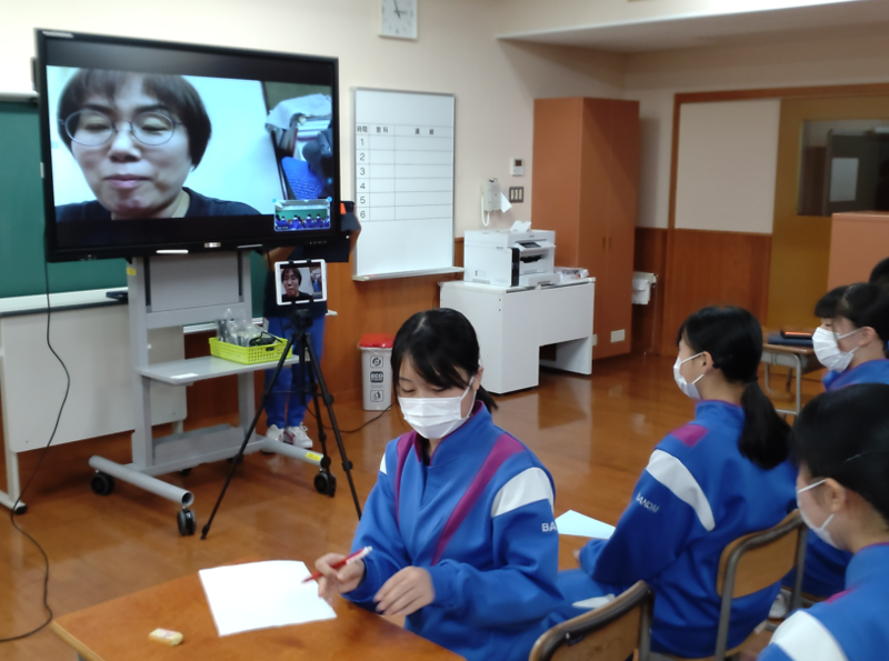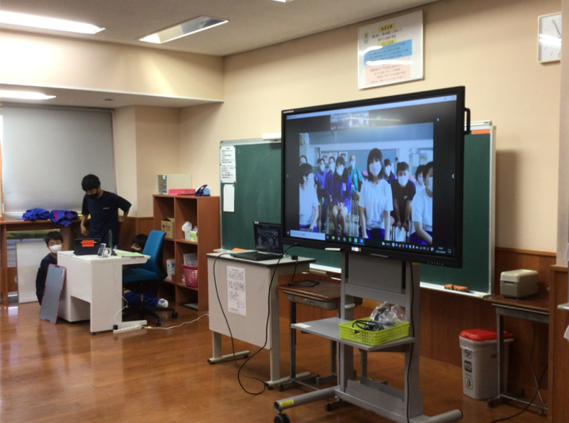 今回は、生徒たちが撮影と編集をした磐梯中学校の校舎や部活動を紹介する動画を見たり、猪苗代町に関するクイズなどをしたりして、楽しい時間を過ごすことができました。