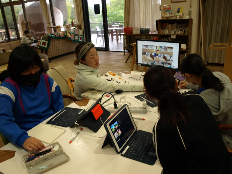 今週は3年生も総合的な学習の時間で、町おこしプレゼンに向けての活動を進めています。試作品作りの様子は昨日お伝えしましたが、それ以外にも、動物保護団体の方とリモートで結んでインタビューをしたり、動画を撮影したり、空き家の活用について現地に行って見学してきたりと、アクティブに活動していました。