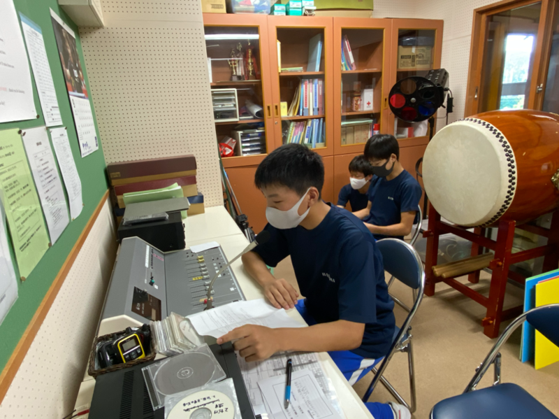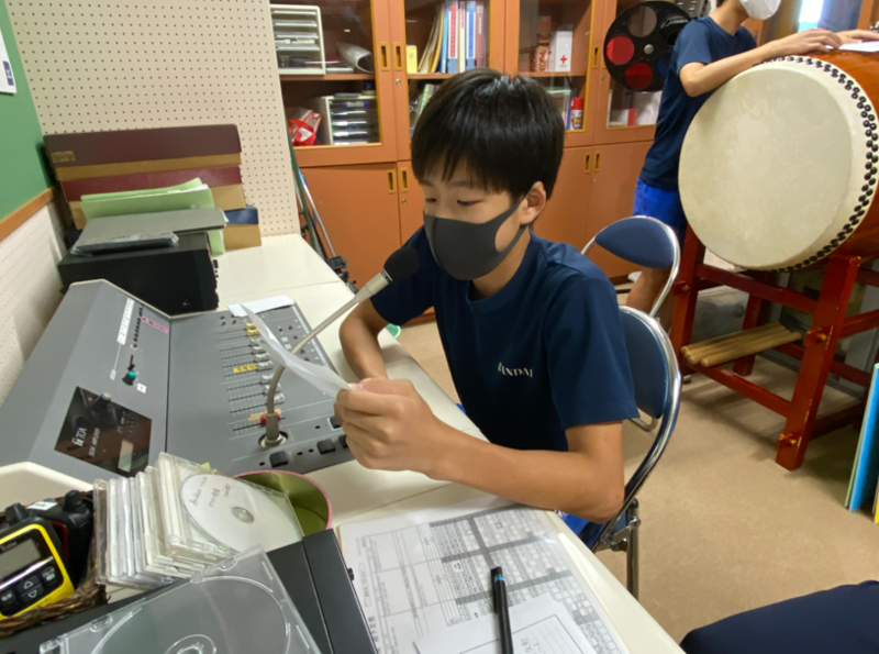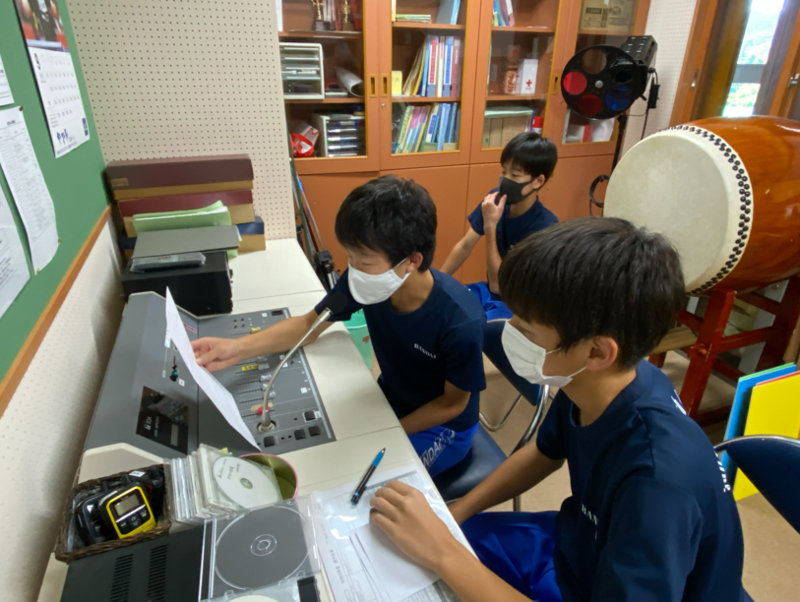清掃終了後から学活開始までのわずかな時間ですが、日曜夕方の国民的娯楽番組のテーマ曲で始まる、とても楽しい放送番組です。パーソナリティを務める生徒会役員の皆さんの、絶妙な掛け合いも番組の楽しさの一つです。