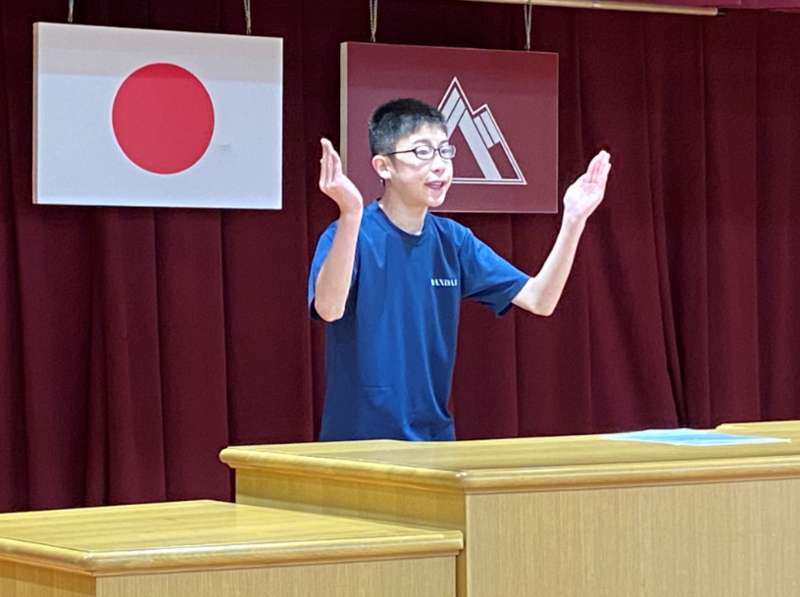 暗唱の部に出場したM・Gくん(2年)も、一番最初の発表者で緊張したようですが、今までの練習の成果を発揮し、堂々とした発表でした(^^)/