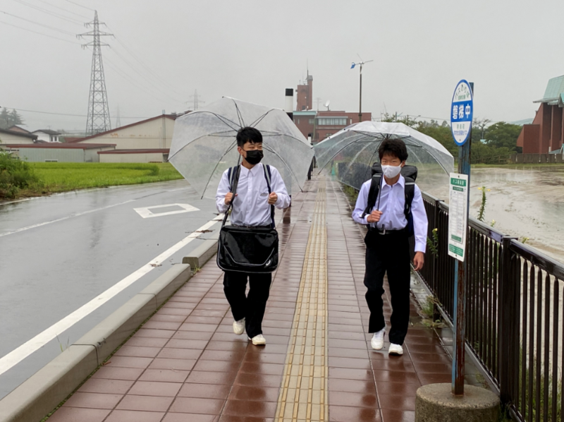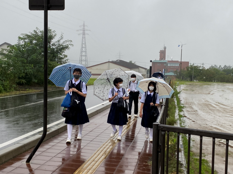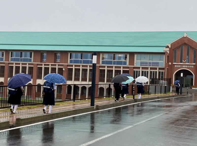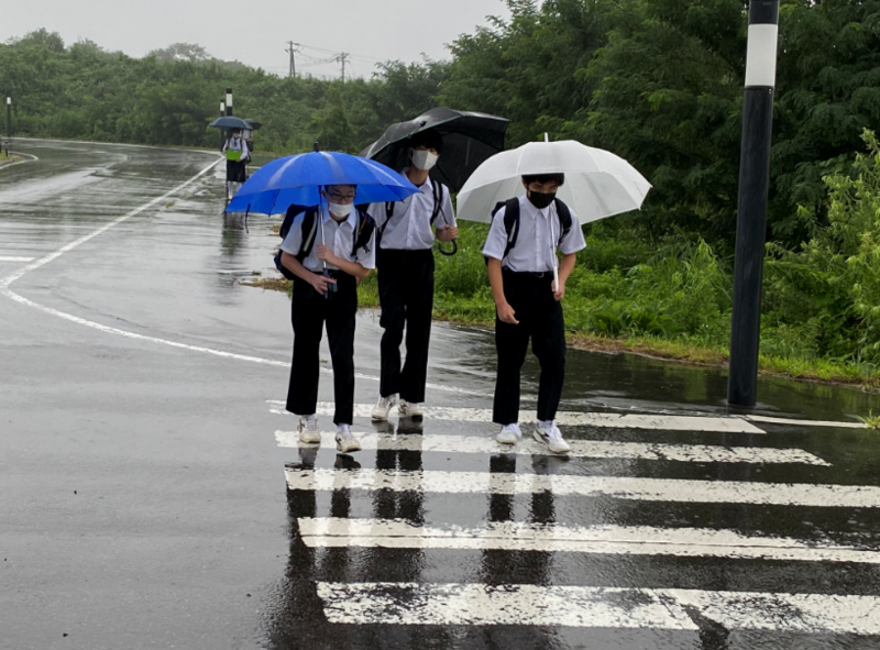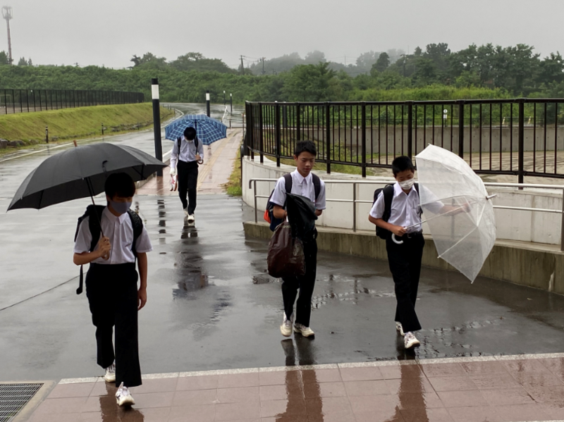 今日から2学期がスタートします。初日の今朝はあいにくの雨模様ですが、生徒たちは元気に登校してきました。