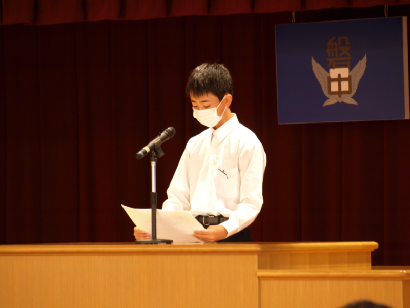続いて、生徒を代表して、2年生のK・Mくんが、夏休みの反省と2学期の抱負についての発表しました。