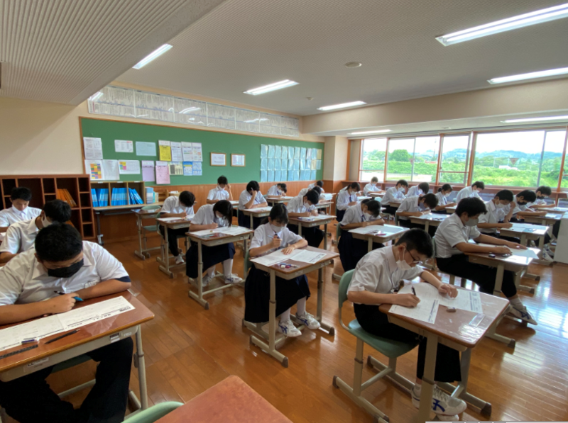 多くの中学校では、長期休業明け(始業式)の翌日はテストと相場が決まっておりまして、本校でもご多分に漏れず、本日はテストを行っています。夏休みに培った力は発揮できていますか?さぁ、残すは5校時目の1教科のみです。おいしい給食(本日は具だくさんのナポリタンスパゲティです。デザートに豆乳プリンもありました(^_^) )を食べてエネルギーを補充して、ラスト1教科も頑張れ~!!