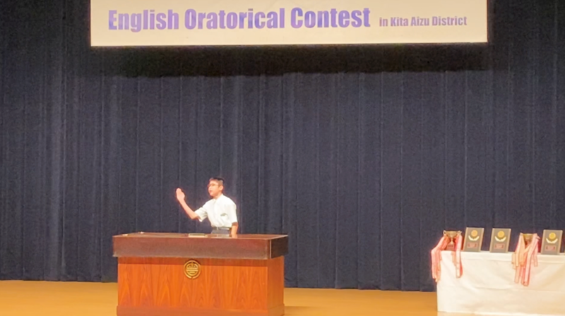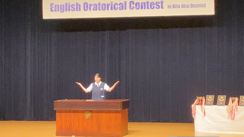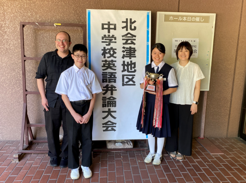 本日行われた北会津地区中学校英語弁論大会の創作の部に出場したN・Mさん(3年)が、見事第1位に輝き、県大会に出場することになりました おめでとうございます
