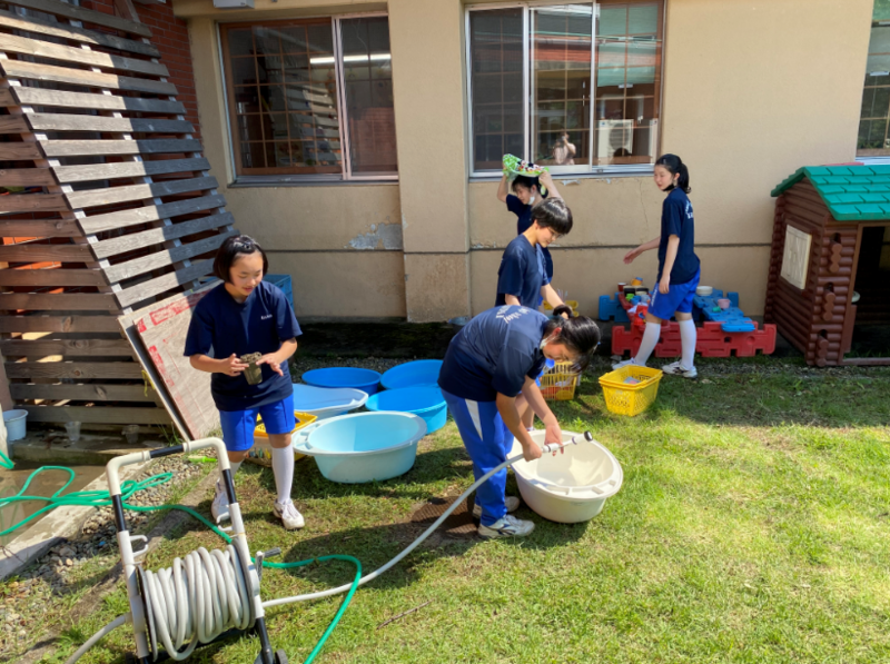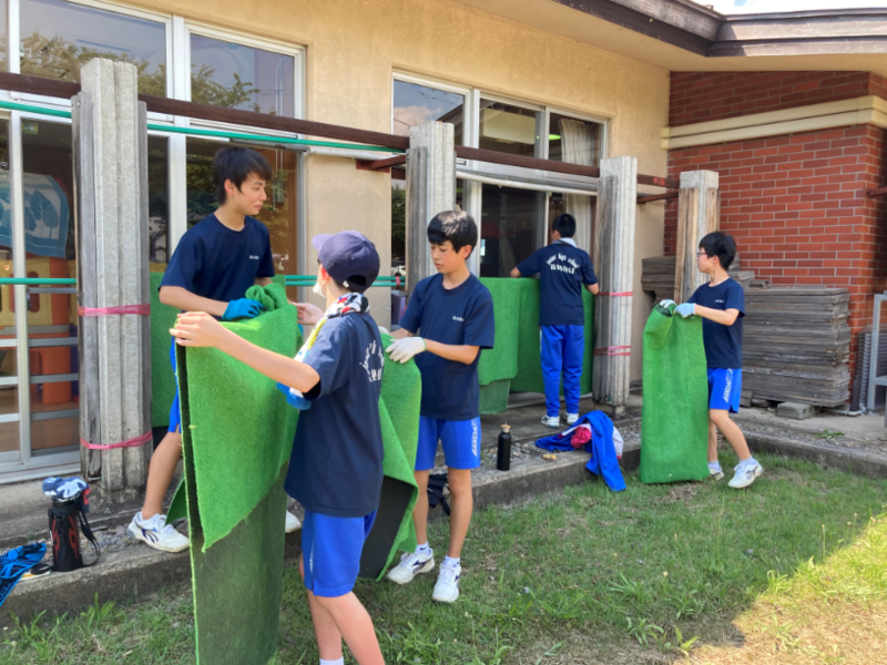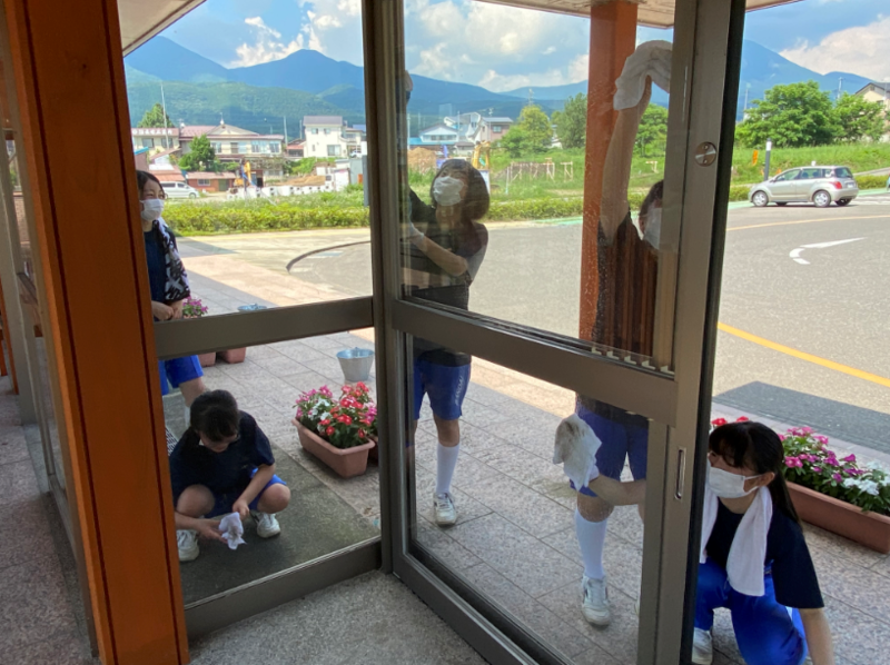 本日の5・6校時に、ボランティア活動を実施しました。各部活動ごとにわかれて、町内の各施設に行って作業を行いました。生徒たちが行った場所は、JR磐梯町駅、磐梯幼稚園、磐梯保育所、磐梯町交流館、磐梯町保健福祉センター、慧日寺資料館です。それぞれの場所で、窓ふきや清掃、遊具の掃除や洗浄、施設内の消毒や草むしり等を行いました。暑い中でしたが、一生懸命取り組んでいました。活動終了後には、施設の担当の方から感謝の言葉がたくさん届きました。