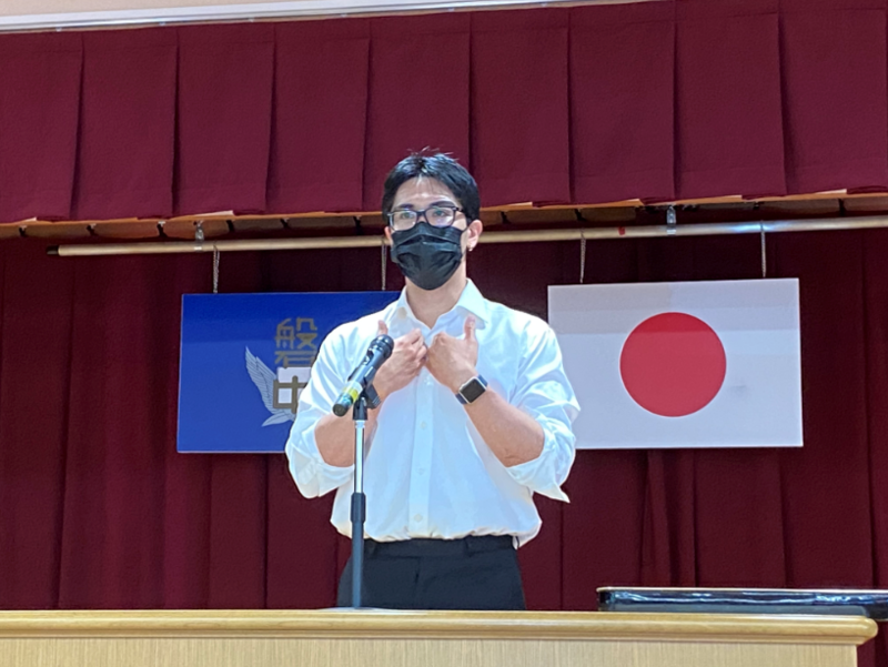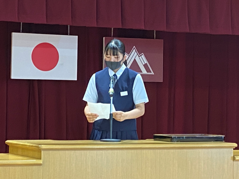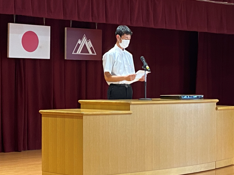 生徒代表3年生のT・Rくんが、1学期を振り返ってと夏休みの目標について意見発表しました。
