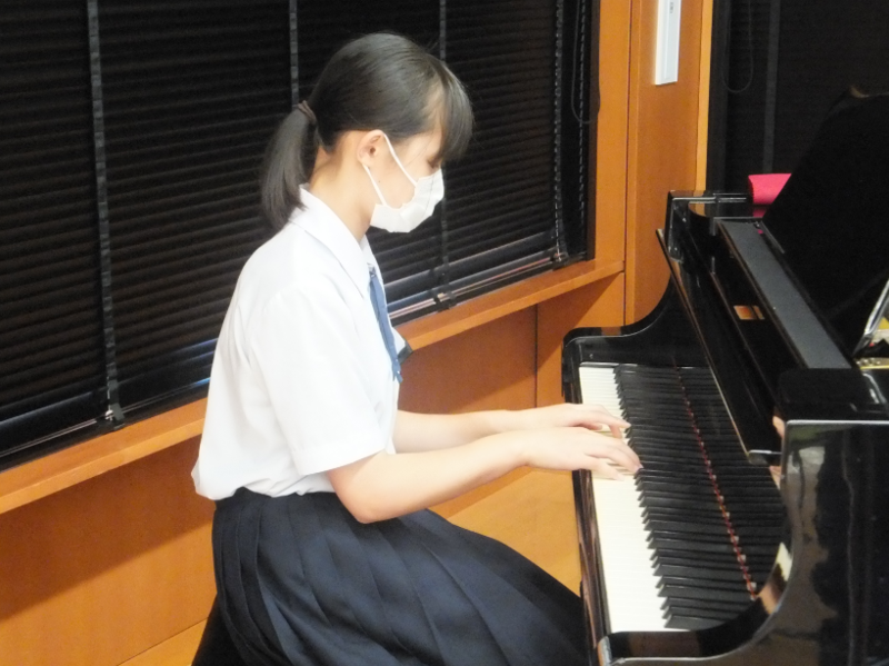校歌斉唱では、2年生のK・Aさんがピアノ伴奏をしました。