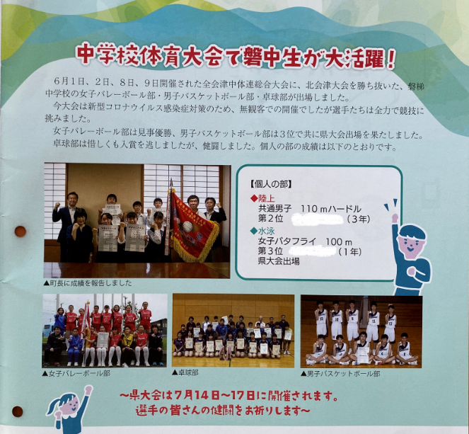 磐梯町の広報誌「磐梯弘報」7月号に、中体連での活躍の様子が掲載されました。
