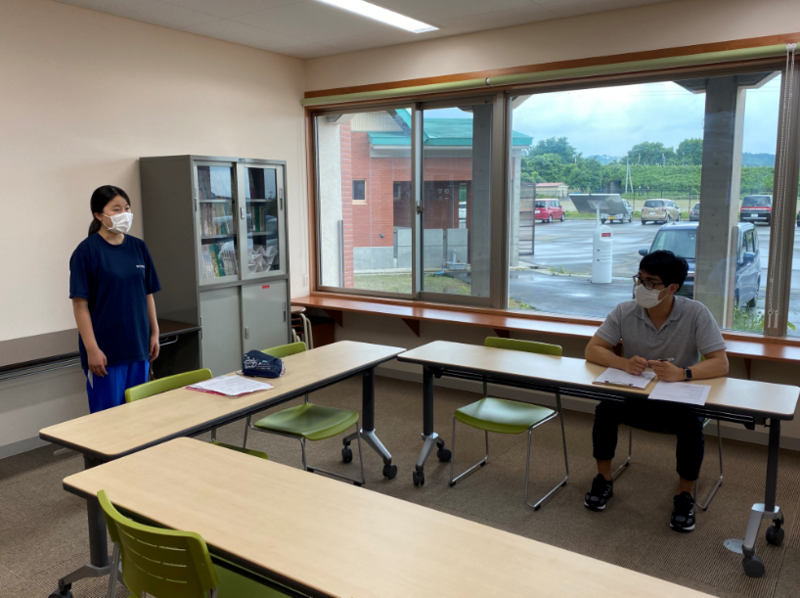 放課後の会議室では、8/27(金)に開催される英語弁論大会に向けての練習が行われていました。3年生のN・Mさんが、ALTのイアン先生のレッスンを受けています。