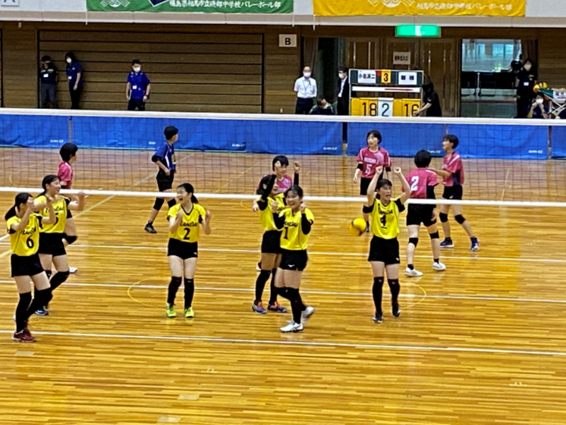 2021年7月15日 15時00分本日の1回戦、相双地区1位の強豪 原町二中との試合は、試合序盤から自分たちのペースで試合を進めることができ、終始リードをする試合展開でした。ふだん通りの力を発揮して、見事に快勝してベスト8入りを決めました ベスト4を懸けた準々決勝は、明日の11:30開始予定です。対戦相手は、西郷二中と福島一中の勝者です。情報が入り次第、お知らせいたします。