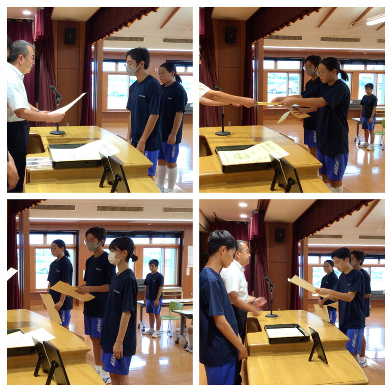 午後の全校集会では、夏休み中に頑張った生徒たちの表彰を行いました。