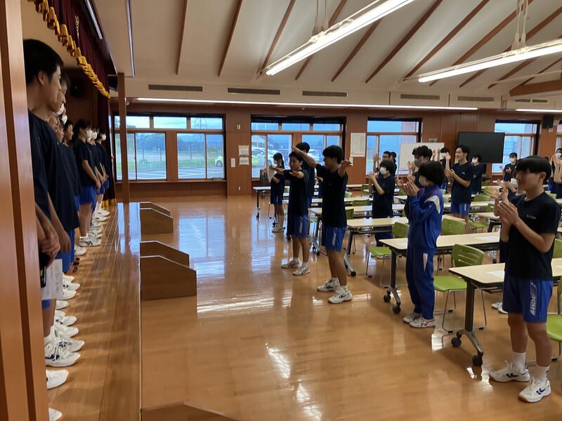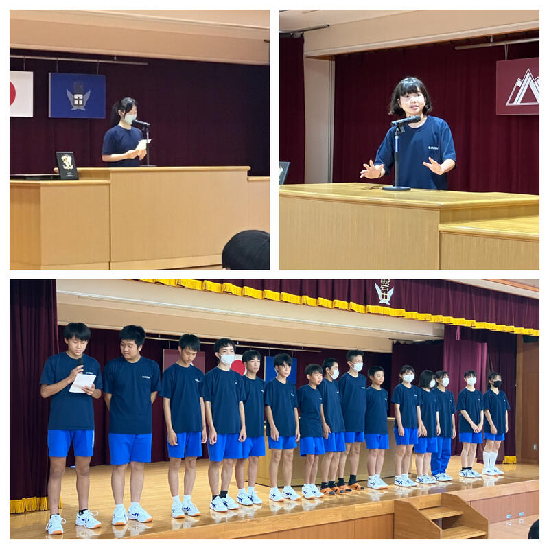 その後、今週行われる英語弁論大会と、来週行われる中体連駅伝大会の壮行会を行いました。