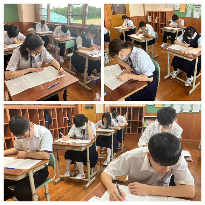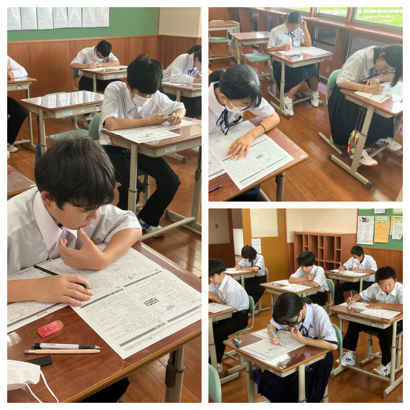 1・2年生は夏休みのテキストの確認問題、3年生は実力テストに取り組んでいます。