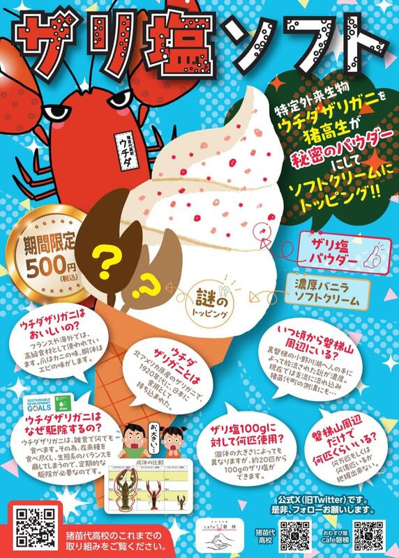 ザリ塩は猪苗代高校生が地域探究学習として、ウチダザリガニを粉末にしてつくったエビ塩ならぬザリ塩です。