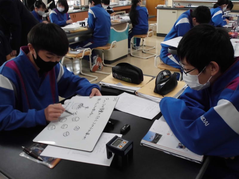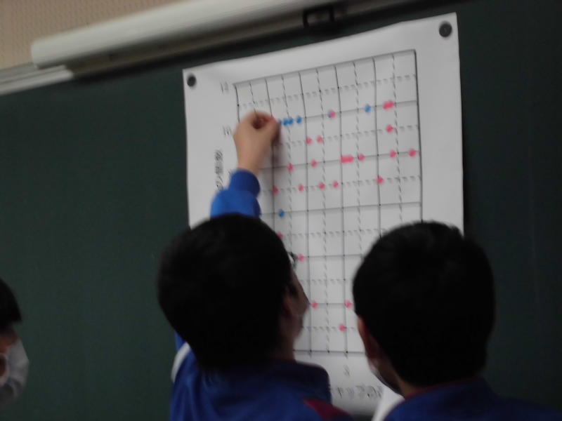 3学年で会津教育事務所の指導主事の先生をお招きして、研究授業を行いました。教科は理科です。ペットボトルのふたをぶつけて、その動く数から運動エネルギーの変化について学ぶという内容です。3年生は真剣に実験に取り組んでおり、考察もよくまとまった素晴らしいものでした。