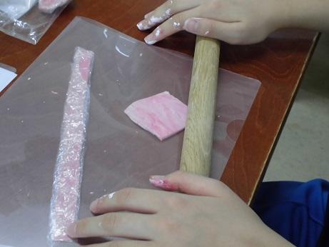 今日は2年生の美術を紹介します。2年生は「オリジナル和菓子を作ろう」と題して、樹脂粘土で自分でデザインした和菓子を作るという制作に入っています。先週までは、様々な和菓子をインターネットで調べ、自分なりのデザインを膨らませていました。今日からはいよいよ粘土で制作にはいります。渡されたばかりの粘土は乳白色です。これにアクリルガッシュを混ぜ、色粘土から作り上げます。どんな和菓子ができあがるか、制作経過はこのブログでお伝えいたします。どうぞお楽しみに。
