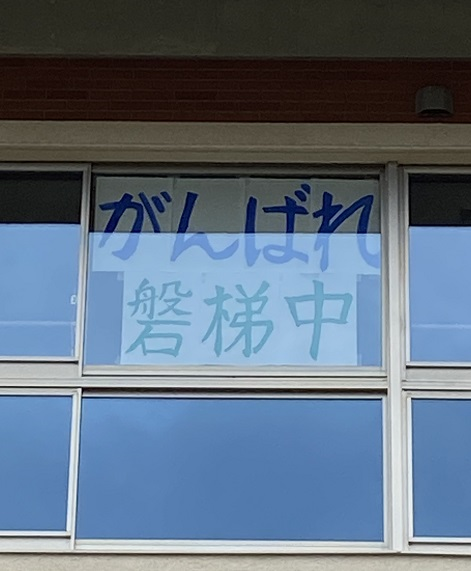 写真をご覧下さい。多目的教室の窓にこのような応援の言葉が掲げられました。それぞれの場での磐中生の健闘を祈ります。結果については、後ほどアップします。