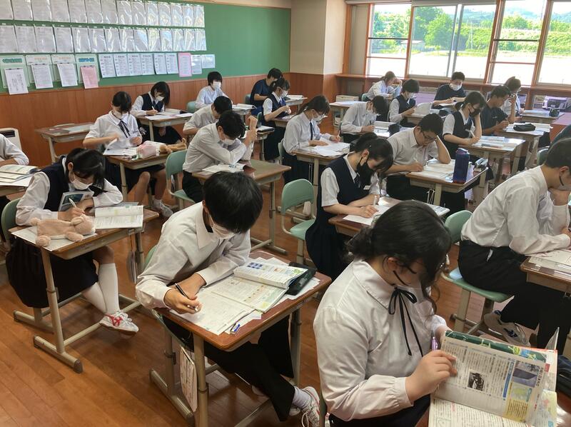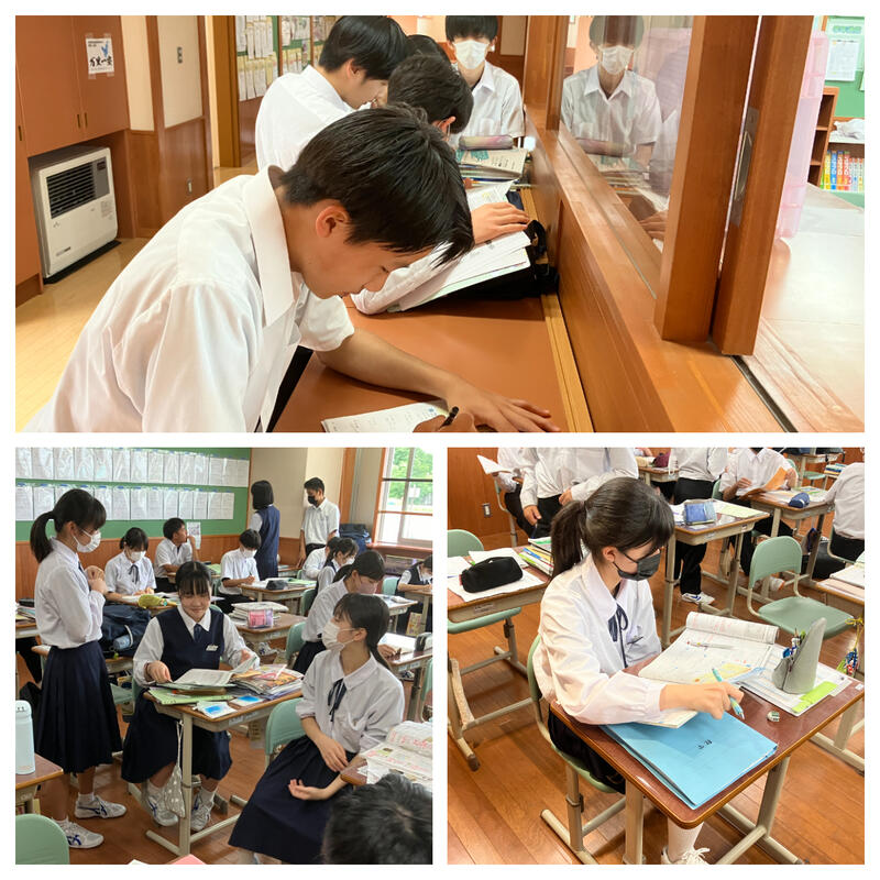 朝の時間に各学年の教室を回ってみると、みんな一生懸命テスト勉強に取り組んでいました。
