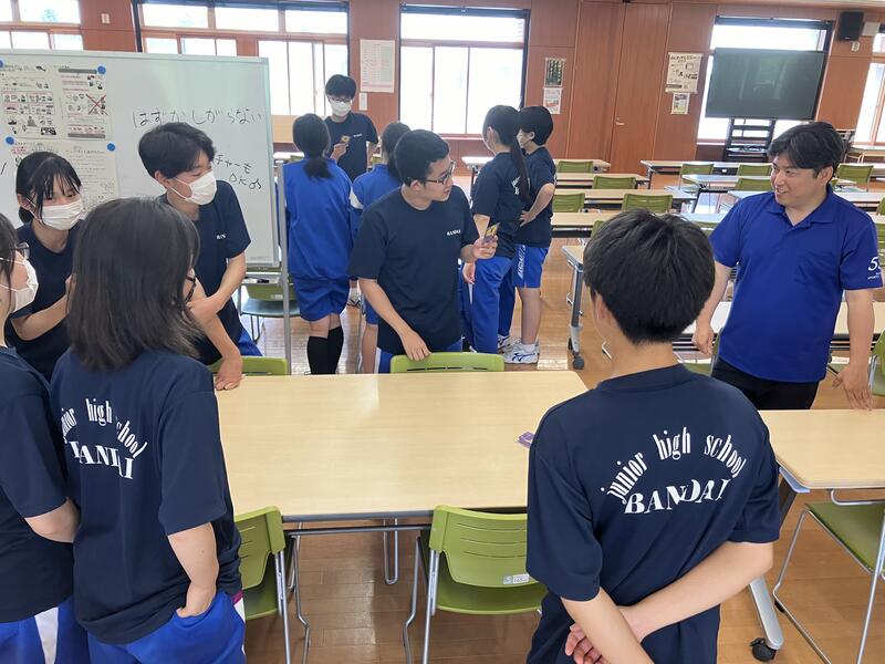 前回はオンラインでの交流でしたが、今回は磐梯中に来ていただいて交流会を行いました。