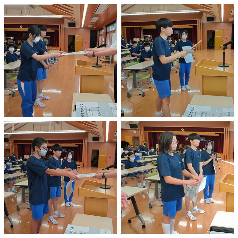 その後、学習委員会から自主学習コンクールの表彰が行われました。