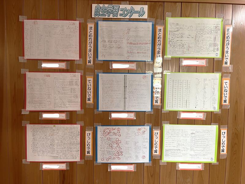表彰された自主学習は、校務センター前の廊下に掲示してあります。
