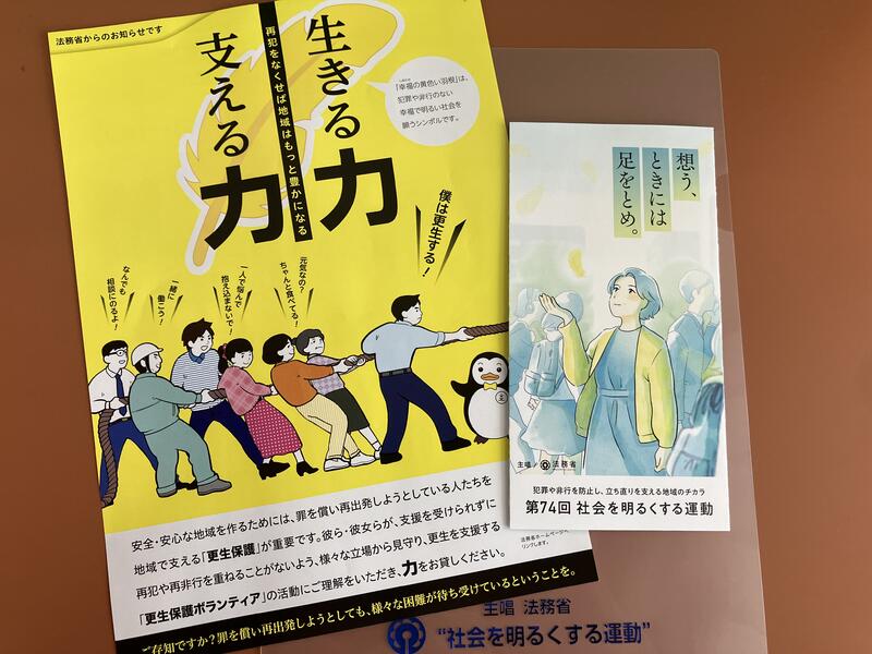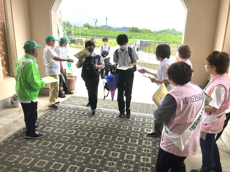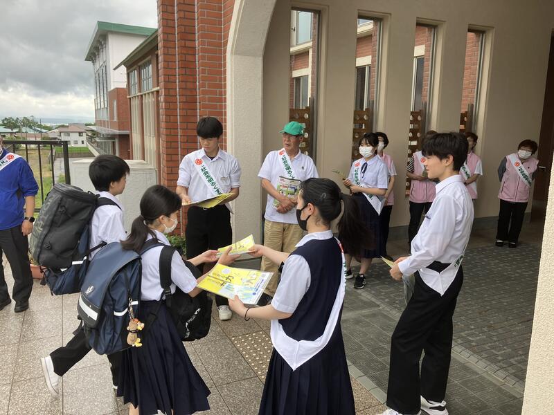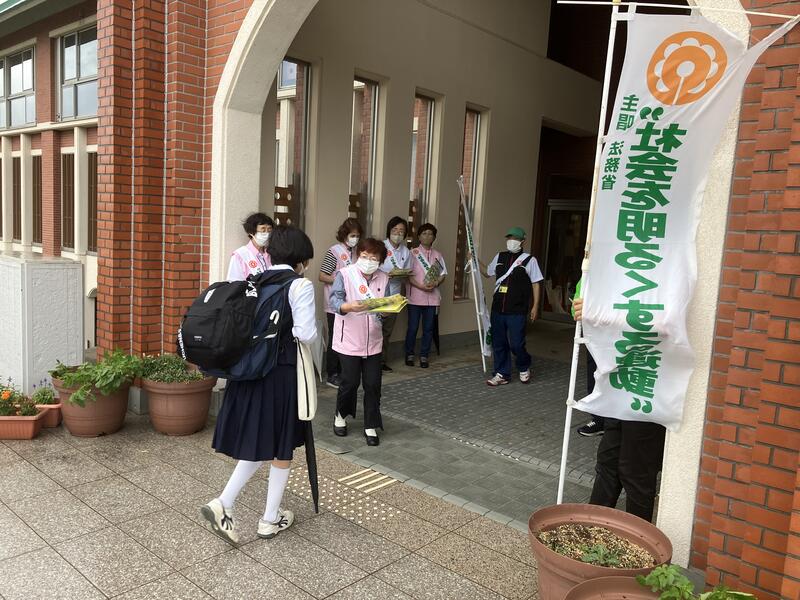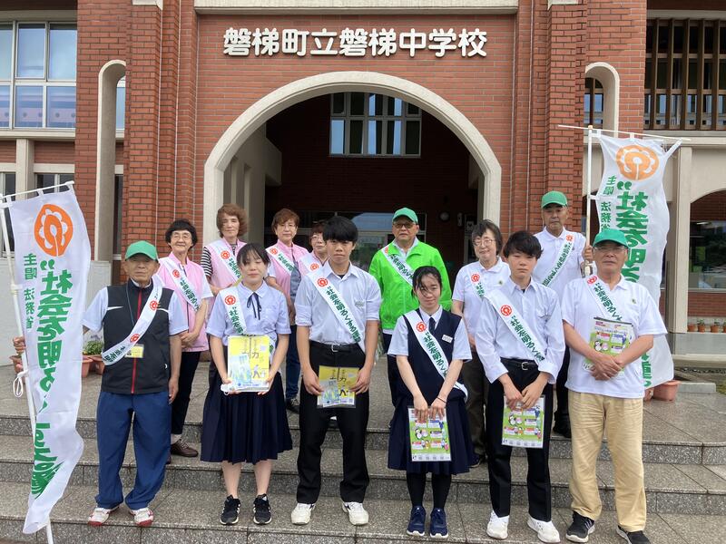本日の登校時に、磐梯町の保護司会・更生保護女性会の方々が、社会を明るくする運動の広報にお出でくださいました。